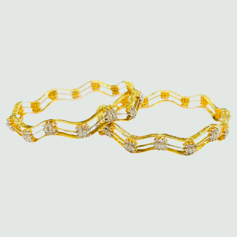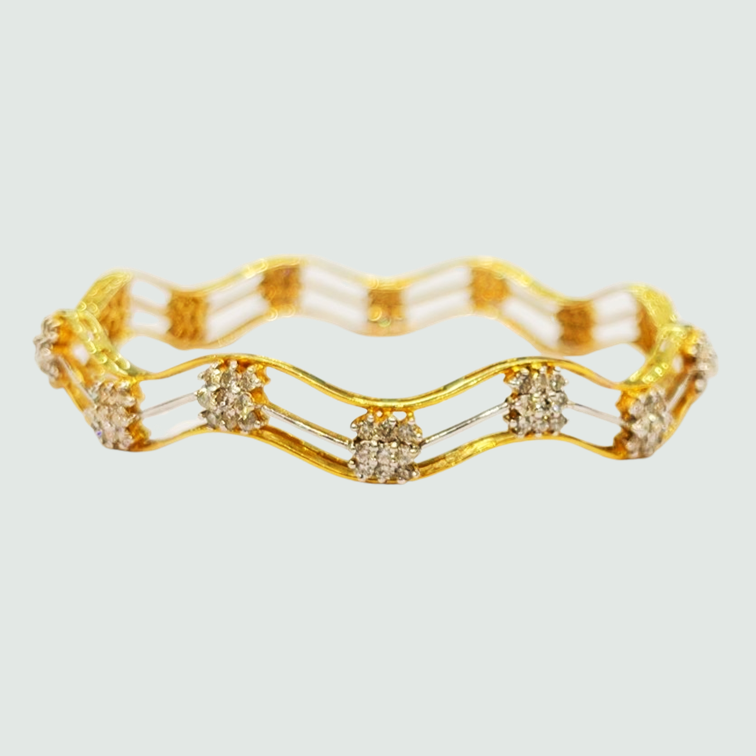 Adorn your wrist with a dazzling pair of partly rhodium-plated Glitters Diamond Bangles. Crafted from 18KT gold and certified by IDT, they'll brighten any ensemble with brilliant sparkle. Perfect for special occasions or everyday wear.
