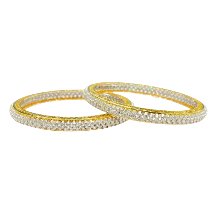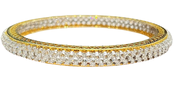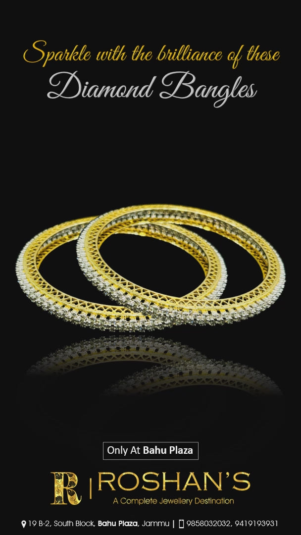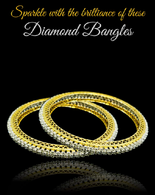 Beautifully crafted with shimmering diamonds, this Diamond Bangles pair by Roshan's adds instant grace and sophistication to any look. Admirably luminous and eye-catching, the bangles will become the highlight of your jewelry collection and turn heads. Make a statement with this radiant pair of bangles certified by DGLA!