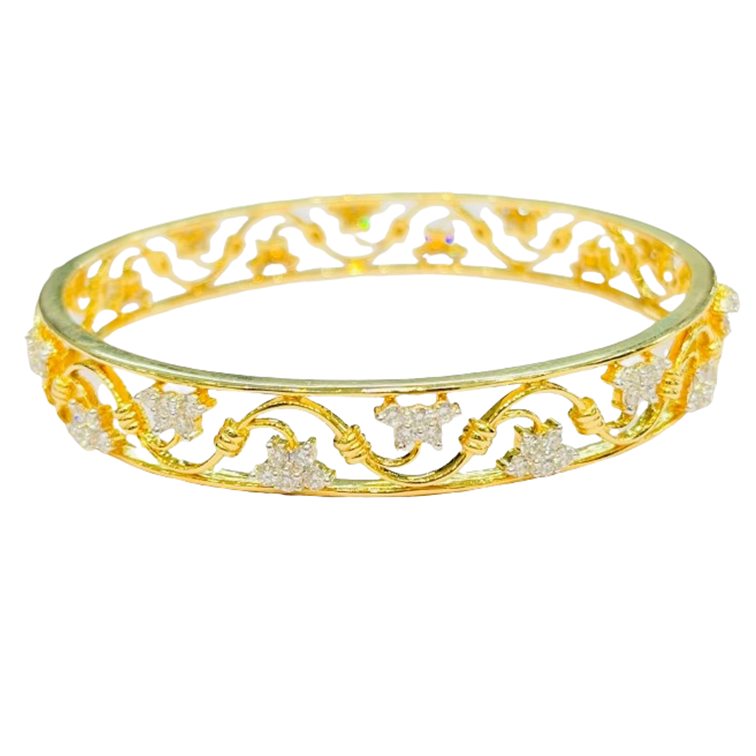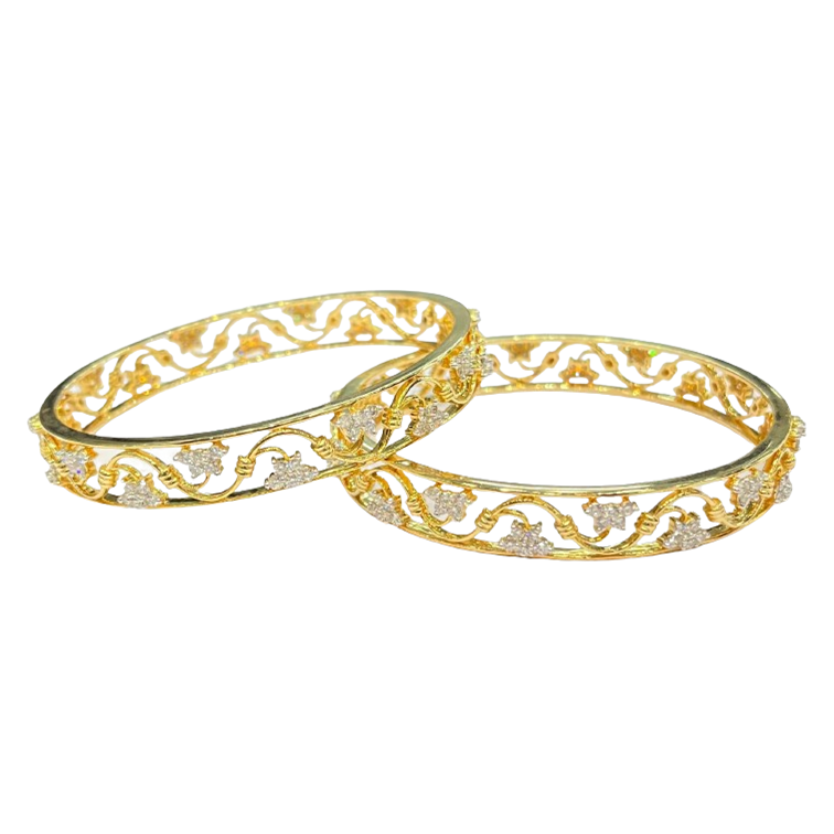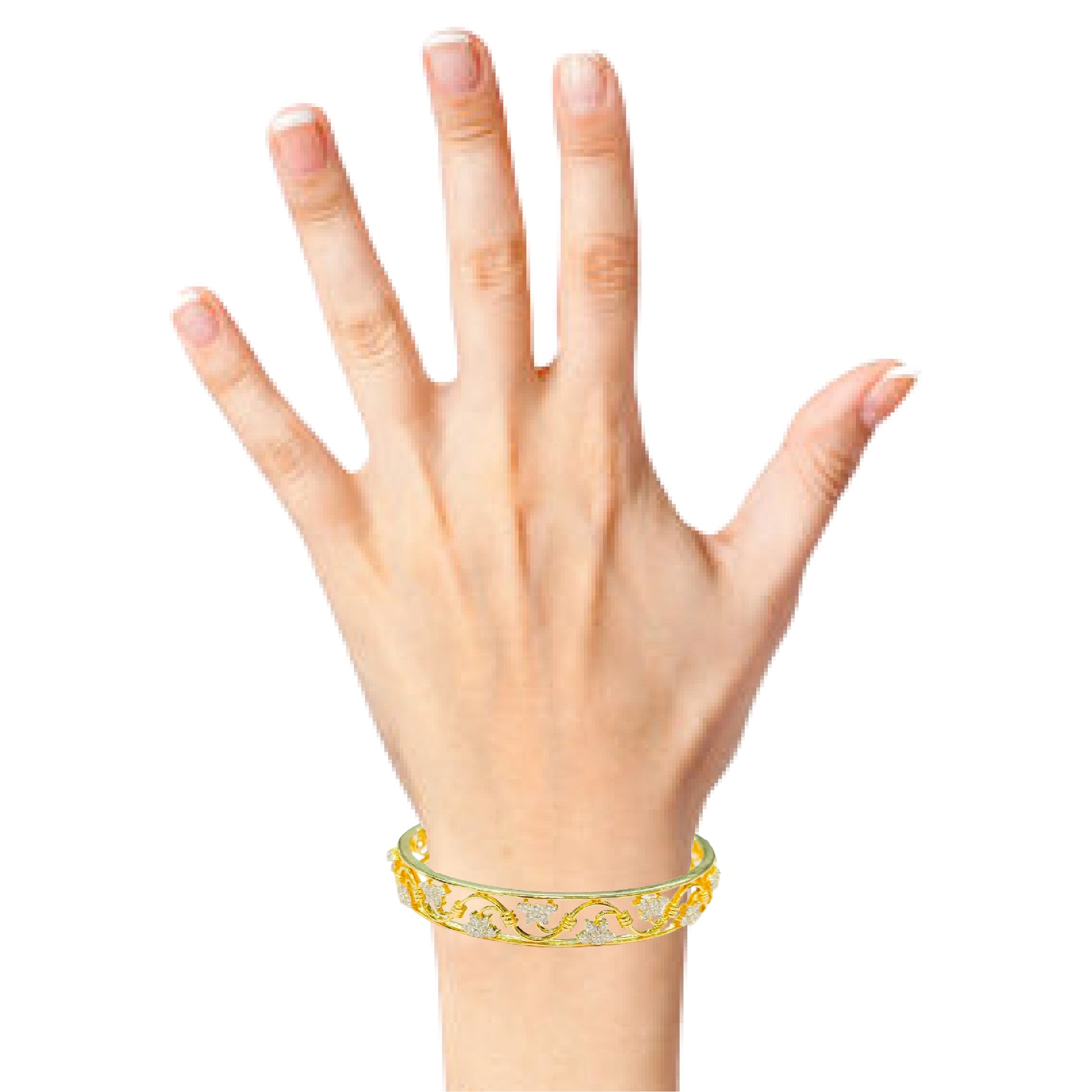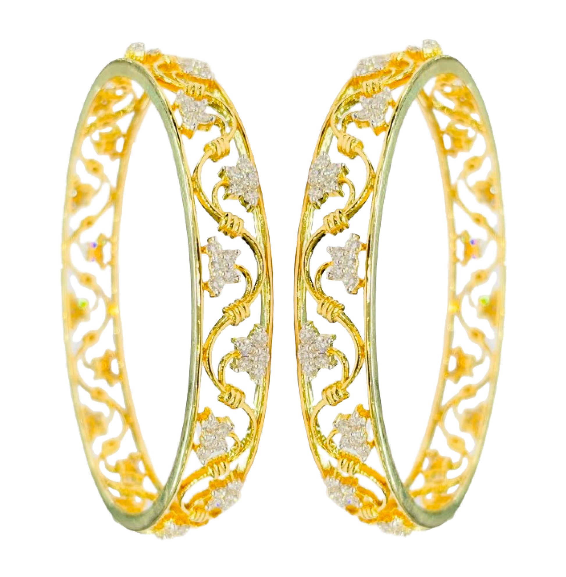 Roshan's Floral Design Diamond Bangles Pair in Yellow Gold